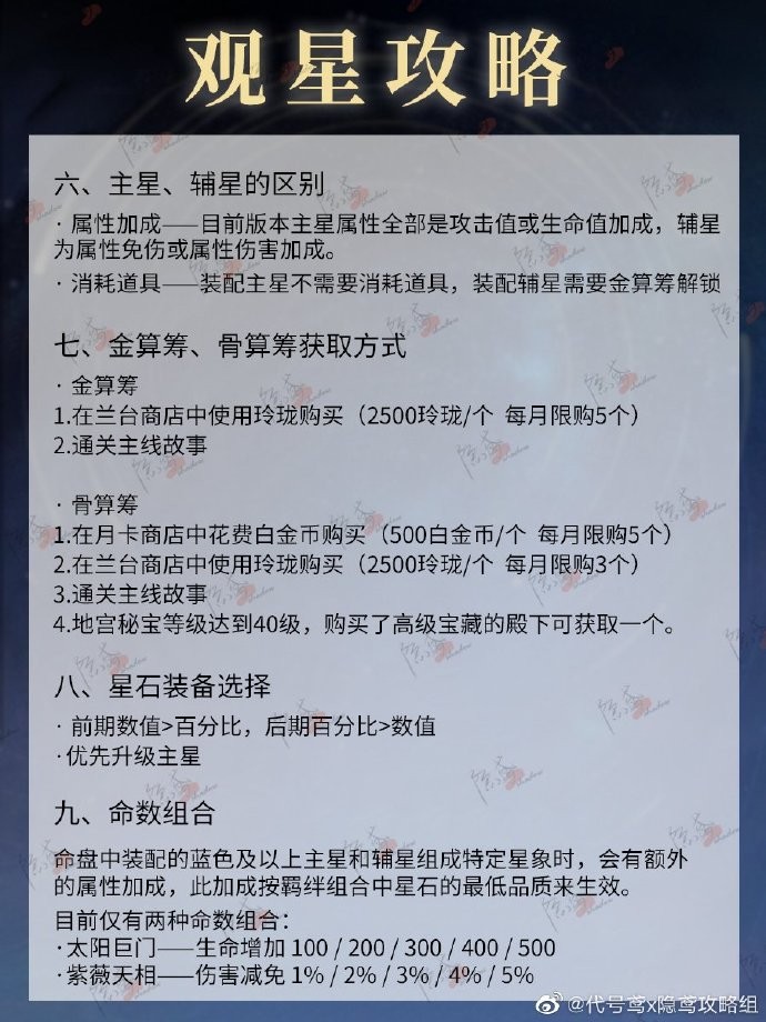 4.20日观星玩法新增橙色星石保底功能,建议各位殿下等更新之后再观星。