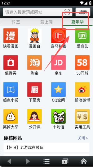 4、展开网址导航选“快看漫画+起点小说”,一键添加至九宫格面板随时开阅。