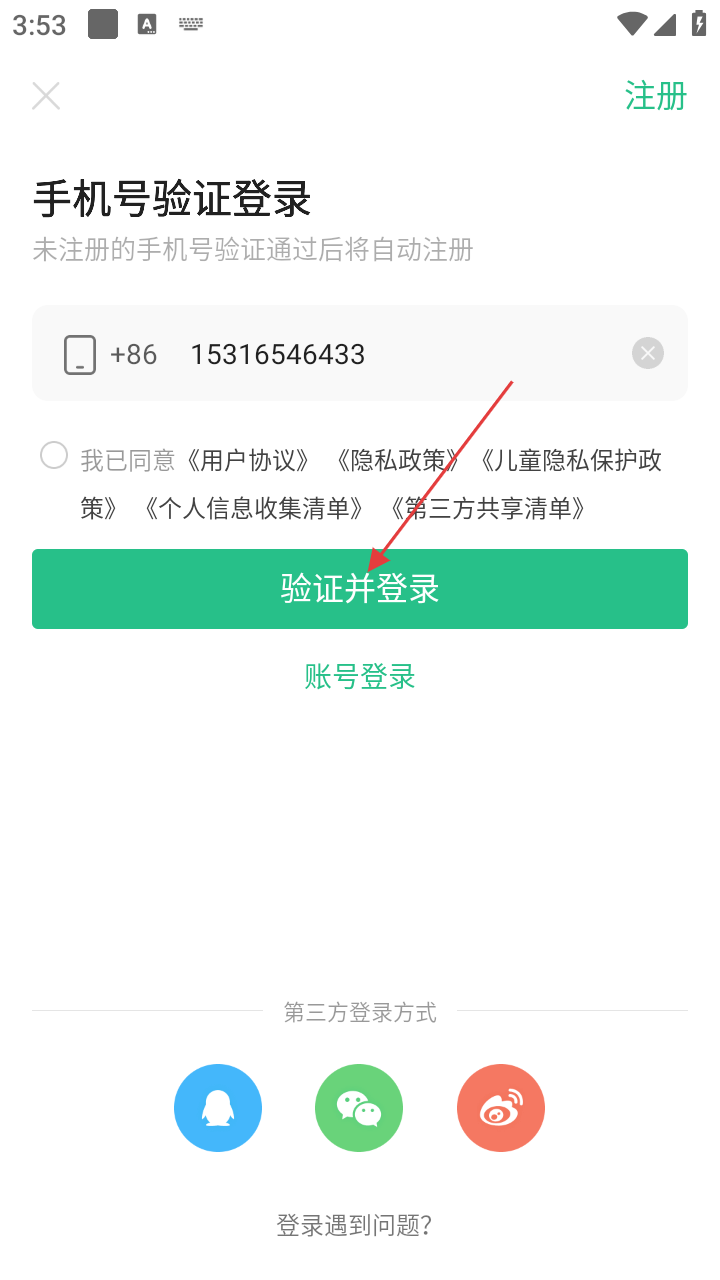 4、填写好手机号码后,勾选同意相关协议,点击【验证并登录】按钮,即可完成手机号验证登录流程。
