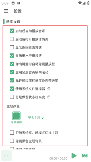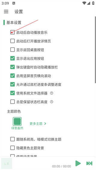 4、勾选【启动后自动播放音乐】等相关设置后,软件将按照设置自动执行对应功能,提升音乐播放的便捷性。