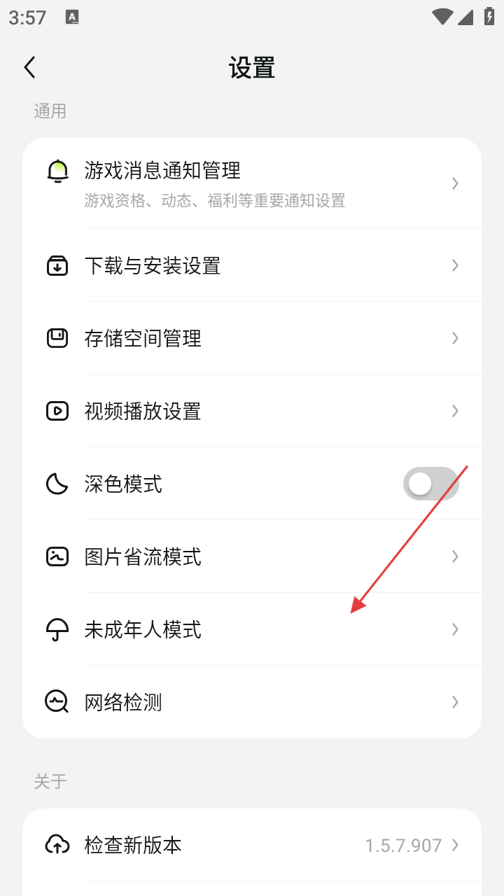 3、进入设置页面,若要设置未成年人相关模式,点击【未成年人模式】选项。