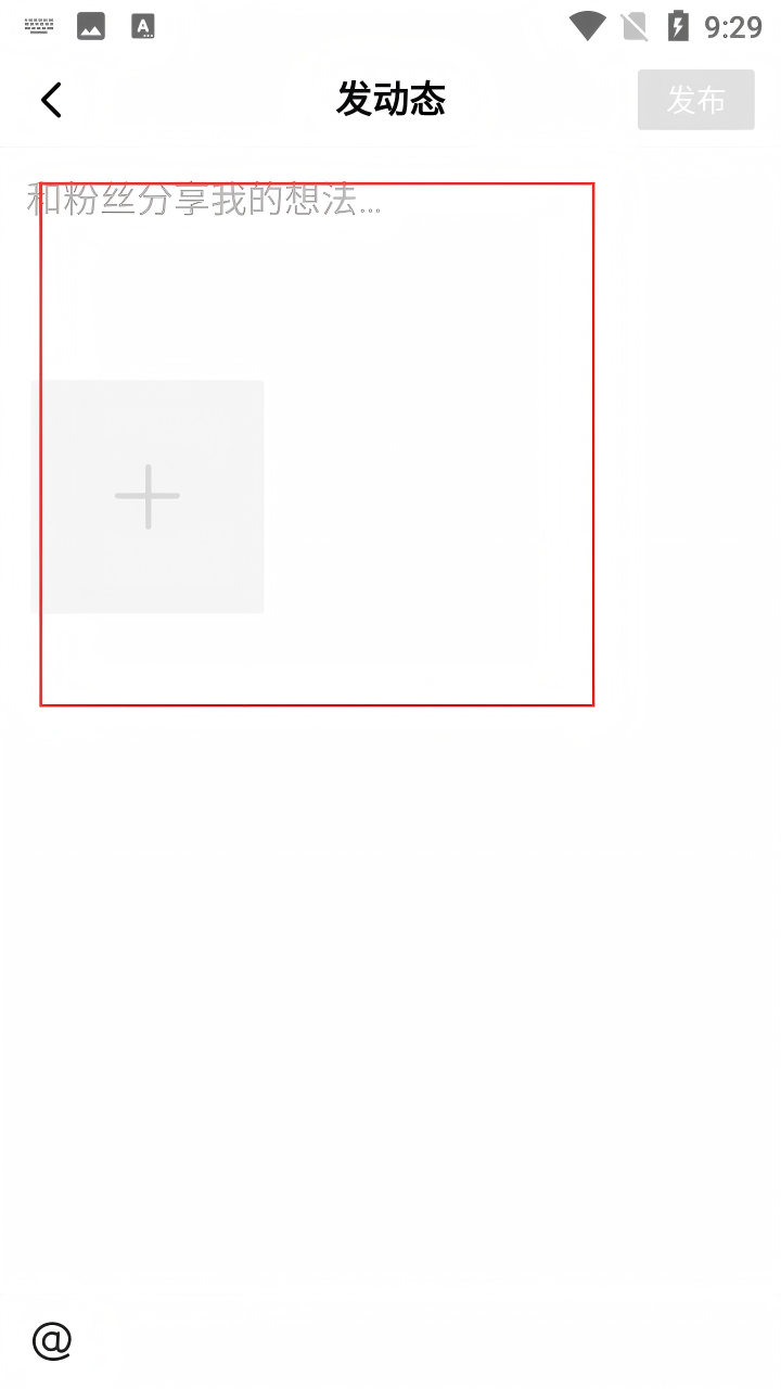 3、在发动态编辑页面,输入要发布的动态内容,还可点击加号添加图片等素材。