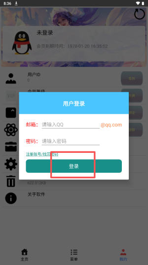 4、点击登录按钮,输入QQ邮箱和密码进行登录。