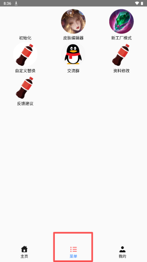 2、点击菜单按钮,浏览可用功能,如初始化、皮肤编辑器等。